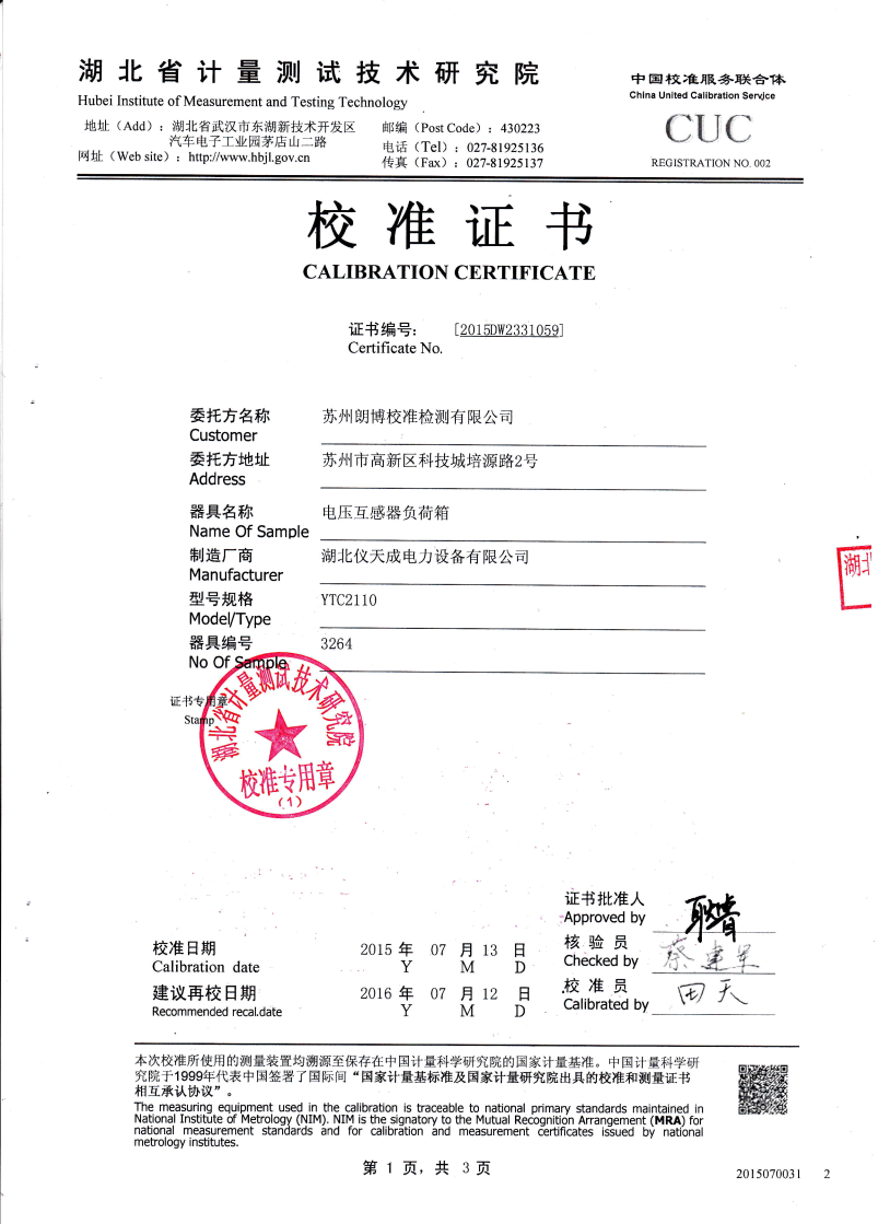 • YTC2110電壓互感器負荷箱
