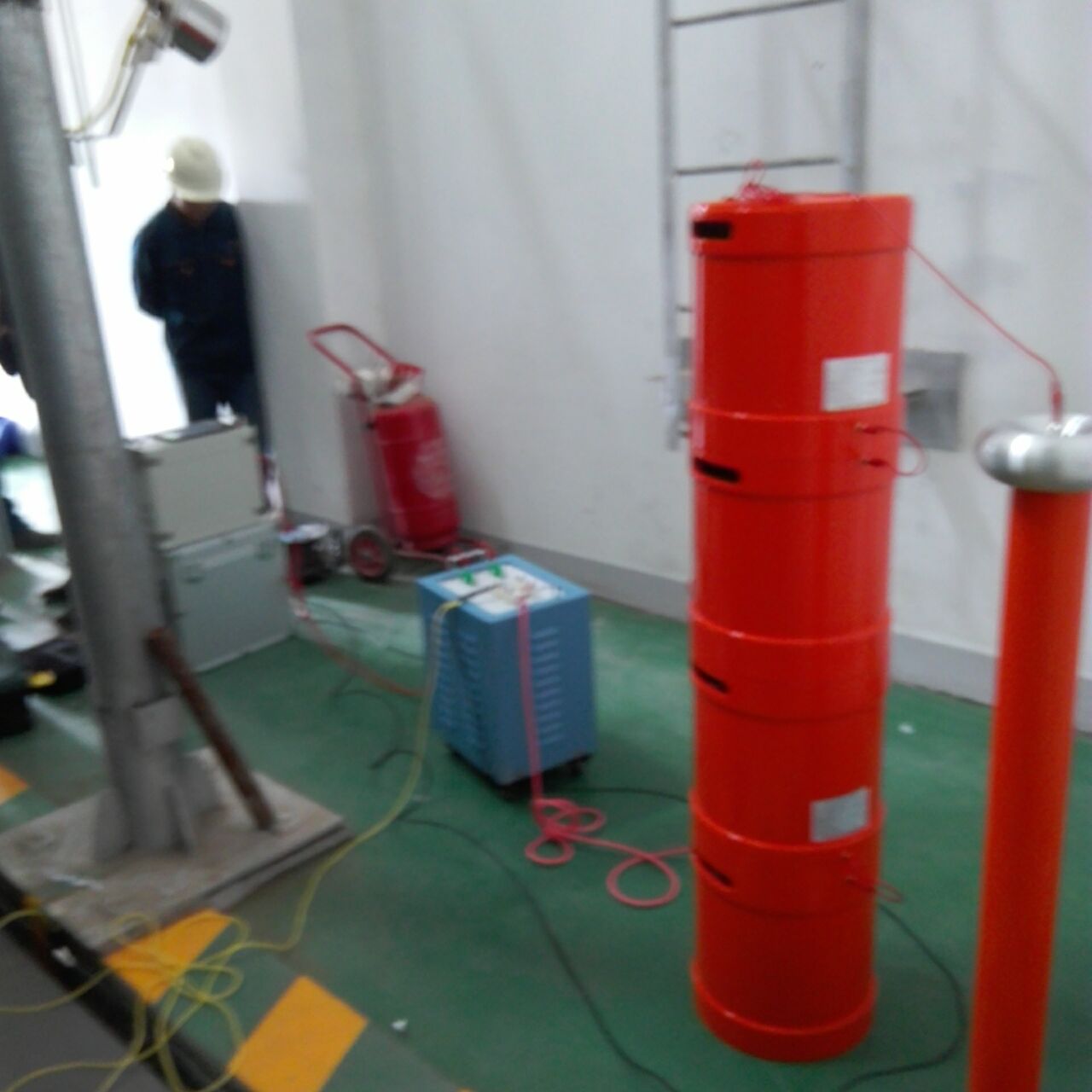 此次培訓的主要設備是我公司的優質產品:YTC850-108/108變頻串聯諧振試驗裝置,該裝置主要針對10kV、35kV電纜, 35kV及以下電壓等級開關、GIS、互感器、斷路器等變電站設備的交流耐壓試驗設計制造。設備所需電源容量大大減小。串聯諧振電源是利用諧振電抗器和被試品電容諧振產生高電壓和大電流的,在整個系統中,電源只需要提供系統中有功消耗的部分。設備的重量和體積大大減少,改善輸出電壓的波形。防止大的短路電流燒傷故障點等優質特點。