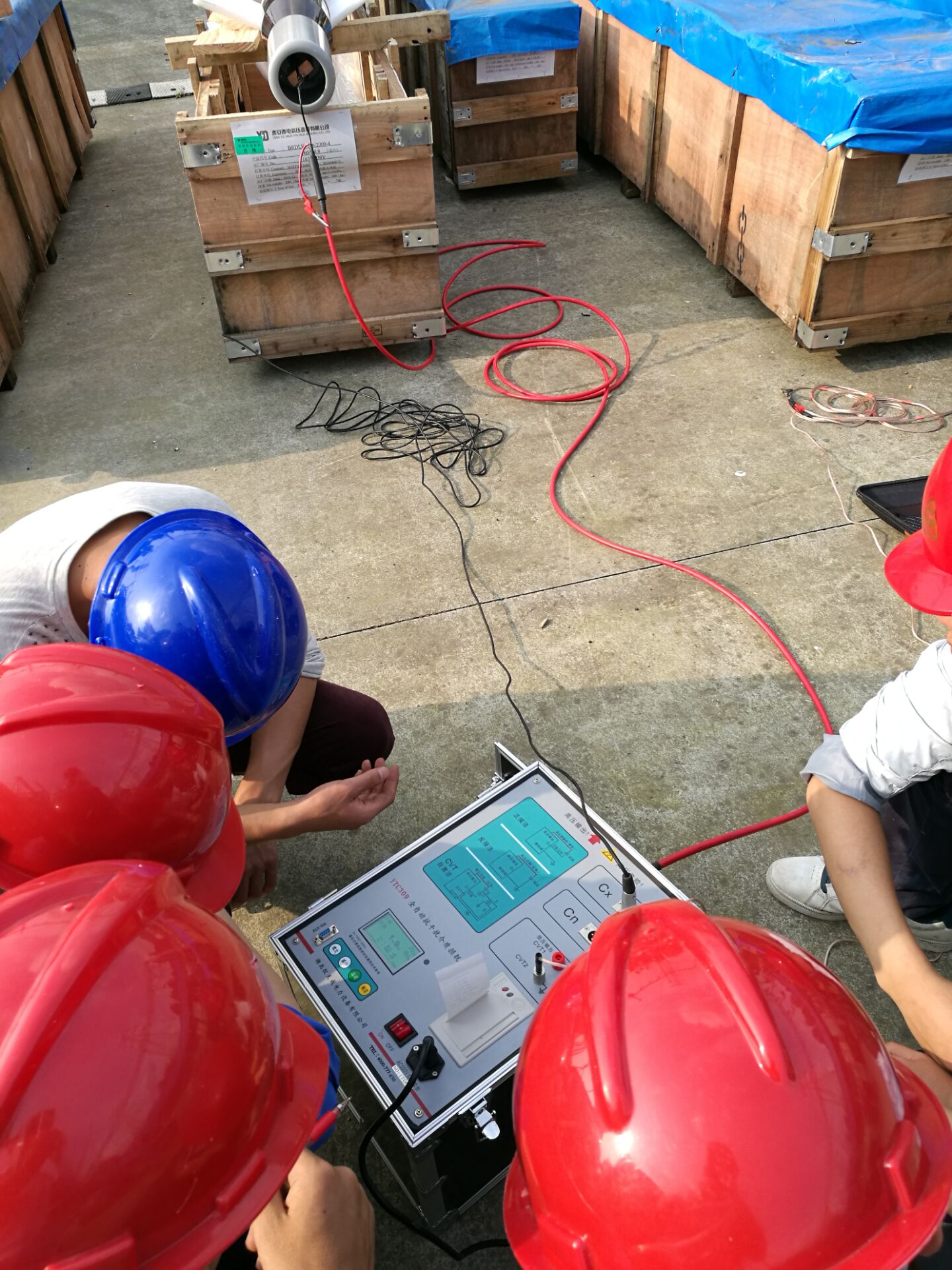 在現場,李工首先對設備進行了簡單的檢查看看設備是否有損壞,之后開始了對設備的培訓。此次培訓的設備和內容很多。李工對各項設備的使用,接線方法進行了實地操作和詳細的講解,并對客戶提出疑問的地方,現場給予細心,準確的解答??蛻衾斫饽芰Ρ容^強,在設備培訓過程中有的同事就已經基本掌握了設備的操作,隨后,又與客戶一起到現場對被試品進行了試驗。