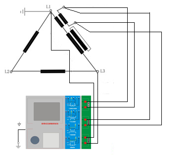 1.測(cè)試儀在三角形接法變壓器上進(jìn)行CT測(cè)試的接線方式如圖所示。