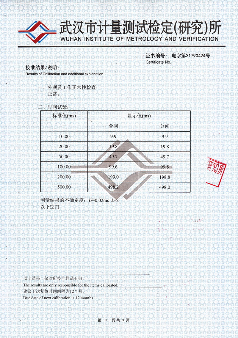 1.時    間:12個斷口的固有分、合閘時間,同相同期、相間同期。
