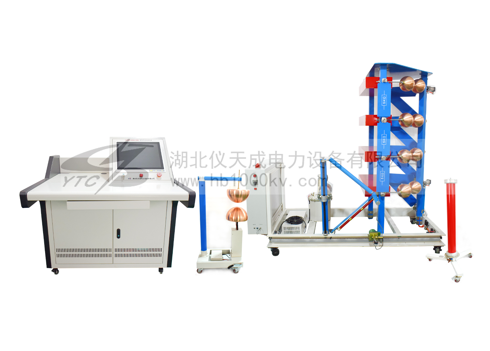 沖擊電壓試驗系統是模擬脈沖高電壓的試驗設備。在現實生活中,脈沖高電壓是經??梢杂龅降?。例如自然界的閃電打雷,落雷處將會出現非常高的脈沖電流和電壓,周圍也會感應出很高的脈沖電壓;又如在電力系統中的開關設備的合切操作也會導致瞬態的脈沖電壓。這些瞬態的脈沖電壓幅值往往在幾十千伏或幾百千伏以上,將會導致設備損壞并危及人身安全,因此進行沖擊電壓的試驗研究是非常必要的。另一方面,模擬自然的雷電現象進行放電機理的研究也是很有意義的。