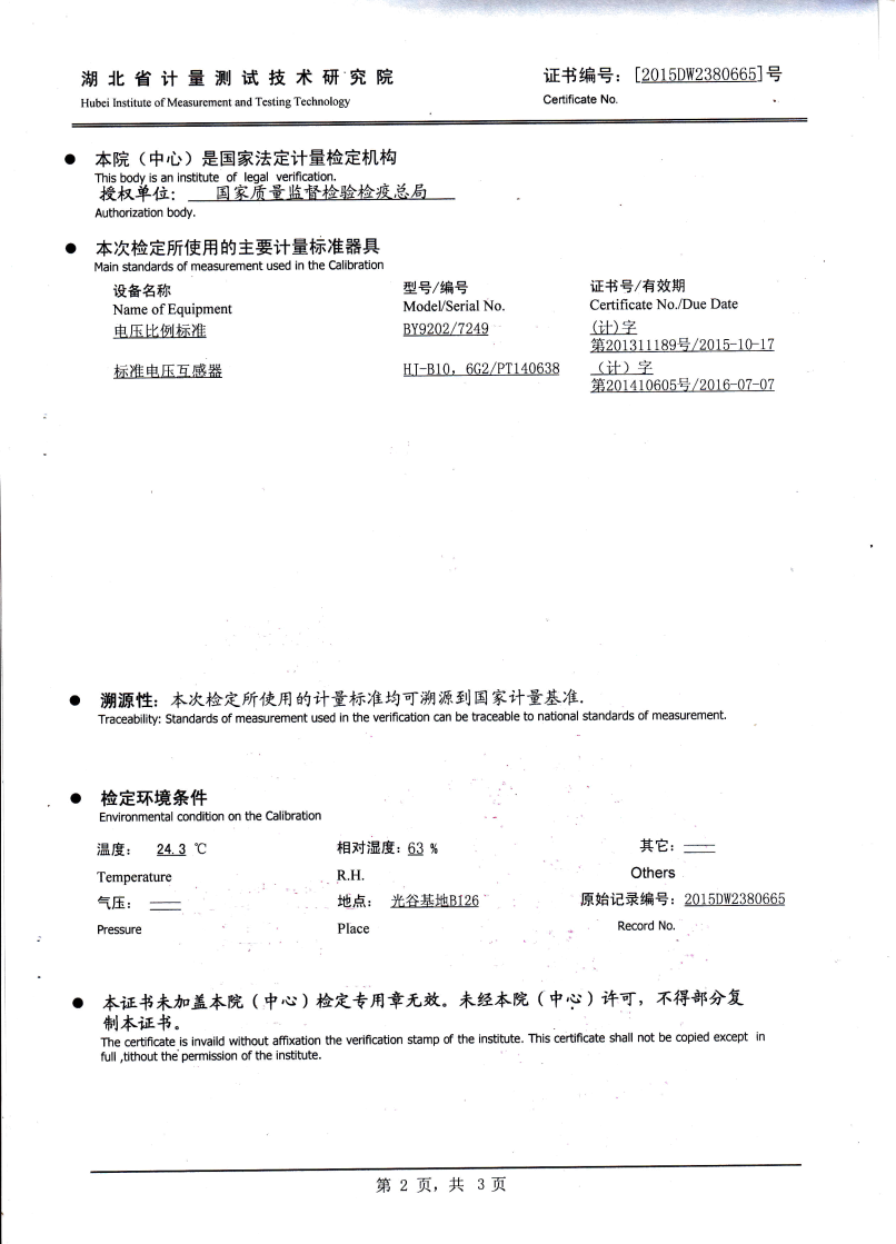 當電壓為20% Un時,比差不大于0.1%, 角差不大于6'(實際誤差不大于誤差限值的60-70%)。