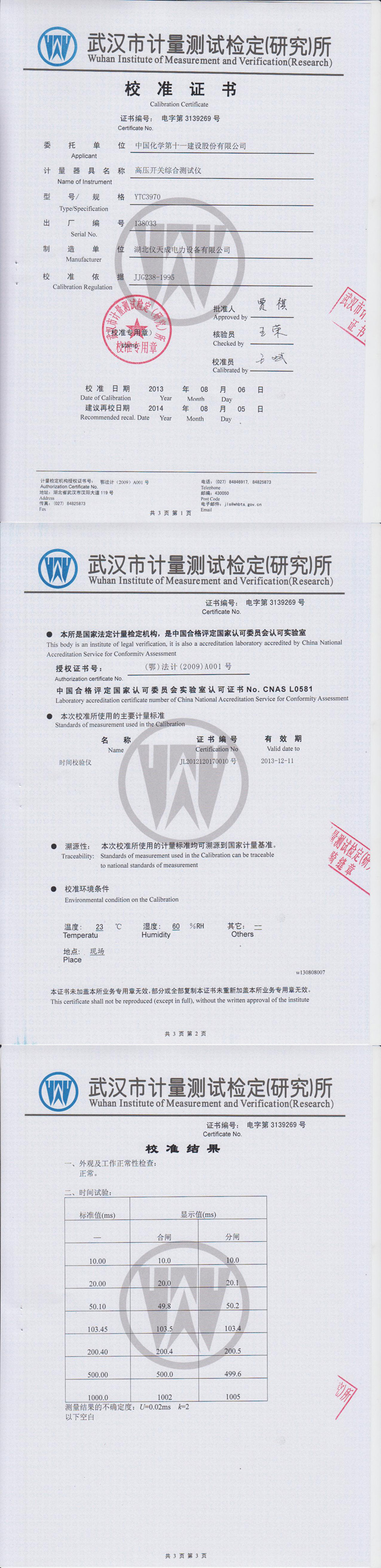 轉(zhuǎn)載:"YTC3970高壓開關(guān)動特性測試儀鑒定證書" 請注明來源于儀天成電力。 更多技術(shù)問題請致電儀天成電力客戶服務(wù):027-87876585,技術(shù)部專線:027-87876585,在線客服:719388481