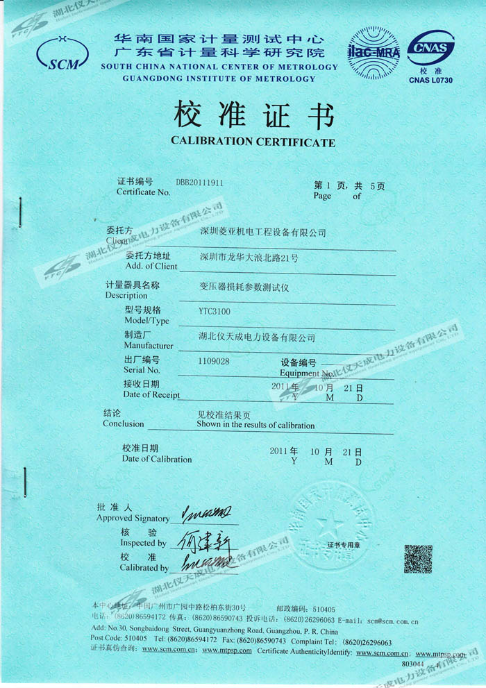 轉(zhuǎn)載:"YTC3100變壓器損耗參數(shù)測(cè)試儀的資質(zhì)證書(shū)" 請(qǐng)注明來(lái)源于儀天成電力。 更多技術(shù)問(wèn)題請(qǐng)致電儀天成電力客戶(hù)服務(wù):027-87876585,技術(shù)部專(zhuān)線(xiàn):027-87876585,在線(xiàn)客服:719388481