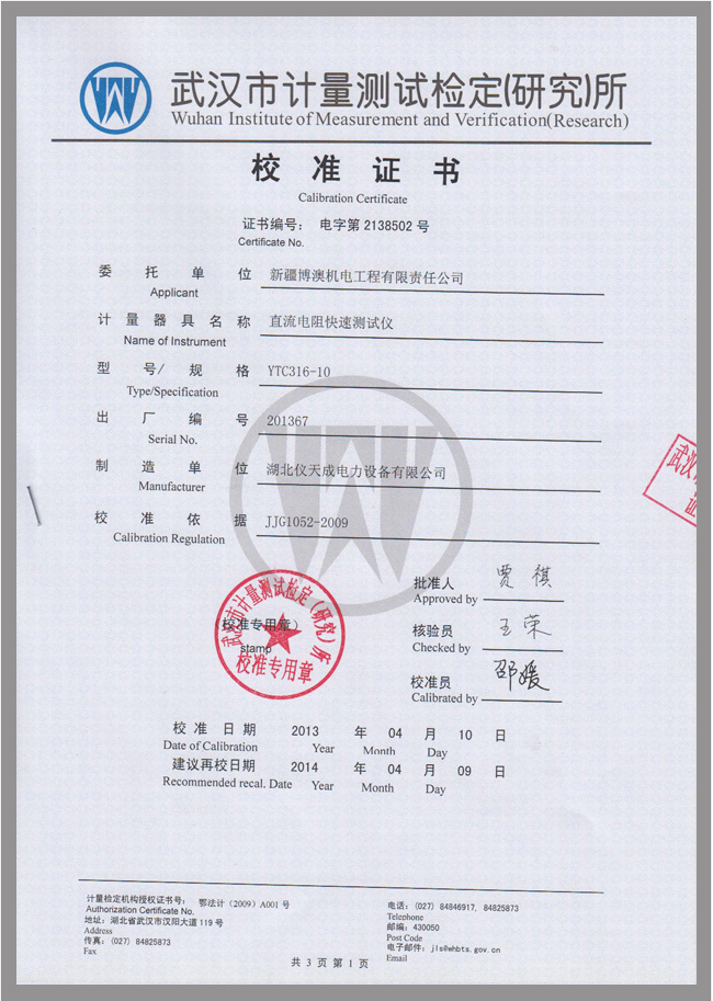 轉(zhuǎn)載:"YTC316-10直流電阻測試儀鑒定證書" 請注明來源于儀天成電力。 更多技術(shù)問題請致電儀天成電力客戶服務(wù):027-87876585,技術(shù)部專線:027-87876585,在線客服:719388481